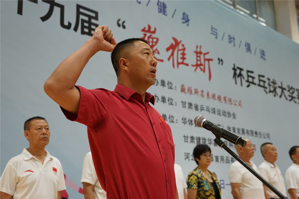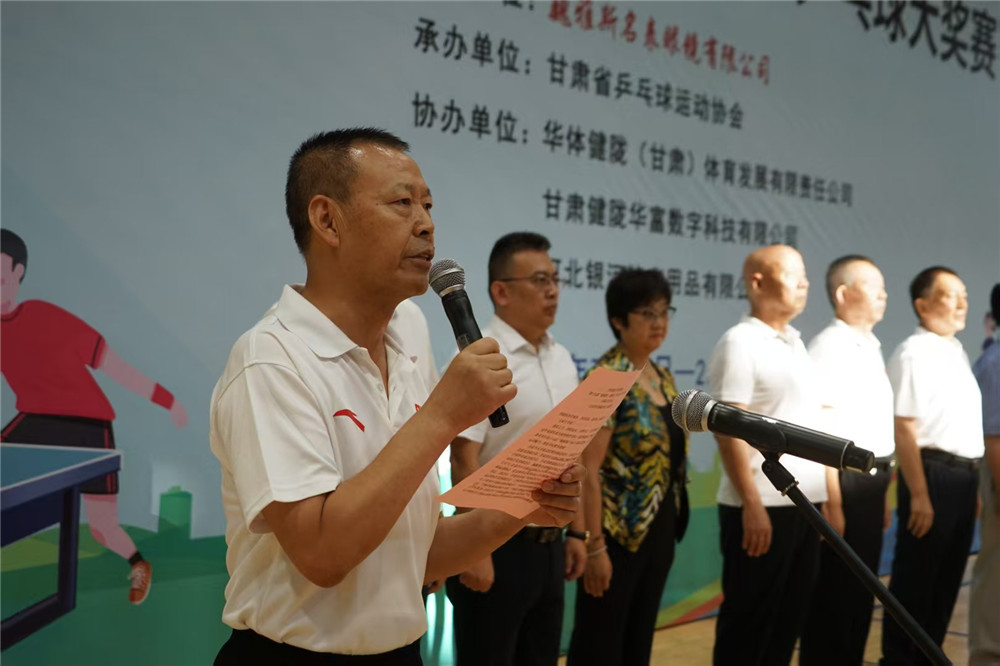 甘肅省乒乓球運(yùn)動(dòng)協(xié)會(huì)顧問任燕順,中國(guó)鐘表商會(huì)副會(huì)長(zhǎng)、甘肅省眼鏡協(xié)會(huì)原會(huì)長(zhǎng)、甘肅省乒乓球協(xié)會(huì)名譽(yù)副會(huì)長(zhǎng)、巍雅斯名表眼鏡有限公司董事長(zhǎng)裴正江,甘肅省乒乓球運(yùn)動(dòng)協(xié)會(huì)會(huì)長(zhǎng)韓力,甘肅省乒乓球運(yùn)動(dòng)協(xié)會(huì)黨支部書記苗發(fā),全聯(lián)房地產(chǎn)商會(huì)黨委副書記、甘肅省城建商會(huì)黨委書記、甘肅省乒乓球運(yùn)動(dòng)協(xié)會(huì)名譽(yù)副會(huì)長(zhǎng)、華富信息集團(tuán)董事長(zhǎng)陳啟建,甘肅省愛國(guó)擁軍促進(jìn)會(huì)常務(wù)副會(huì)長(zhǎng)、甘肅省乒乓球運(yùn)動(dòng)協(xié)會(huì)副會(huì)長(zhǎng)、蘭州市籃球運(yùn)動(dòng)協(xié)會(huì)主席、蘭州藍(lán)酒實(shí)業(yè)集團(tuán)董事長(zhǎng)宗榮,青海省乒乓球運(yùn)動(dòng)協(xié)會(huì)副主席高麗嚴(yán),寧夏自治區(qū)乒乓球運(yùn)動(dòng)協(xié)會(huì)副會(huì)長(zhǎng)張智勇,巍雅斯名表眼鏡有限公司總裁裴明偉,副總裁裴明宏,副總裁、甘肅樺琳房地產(chǎn)開發(fā)有限公司常務(wù)副總經(jīng)理?xiàng)疃≥x及有關(guān)領(lǐng)導(dǎo)、運(yùn)動(dòng)員、裁判員、教練員、工作人員一起參加了簡(jiǎn)樸但氣氛熱烈的大獎(jiǎng)賽開幕式。